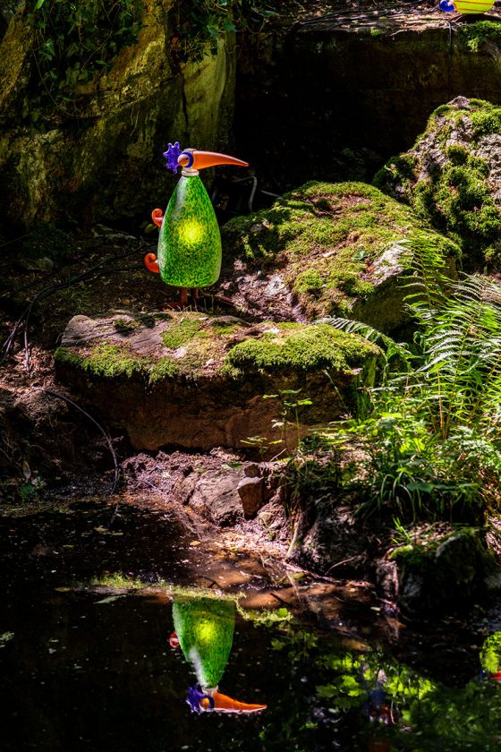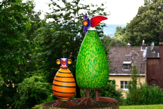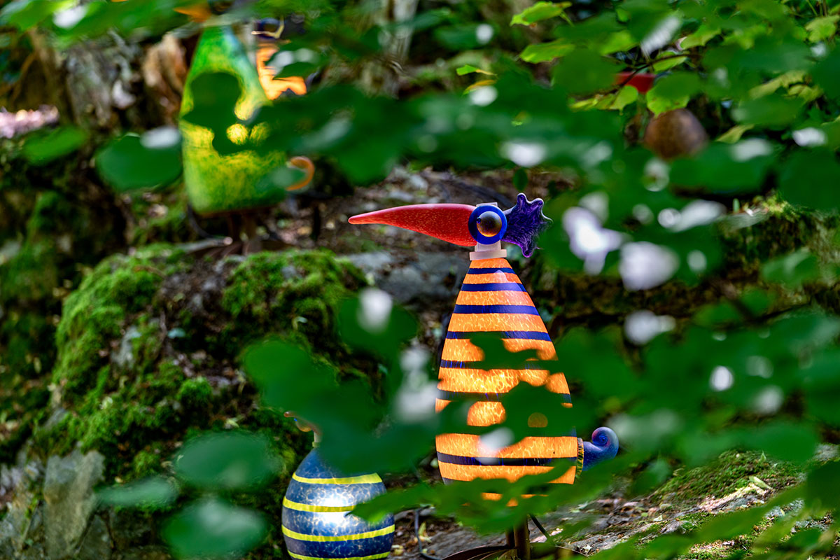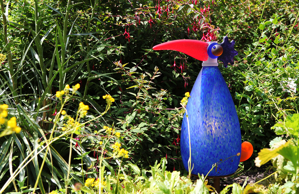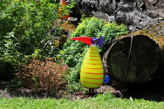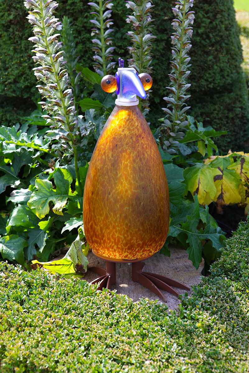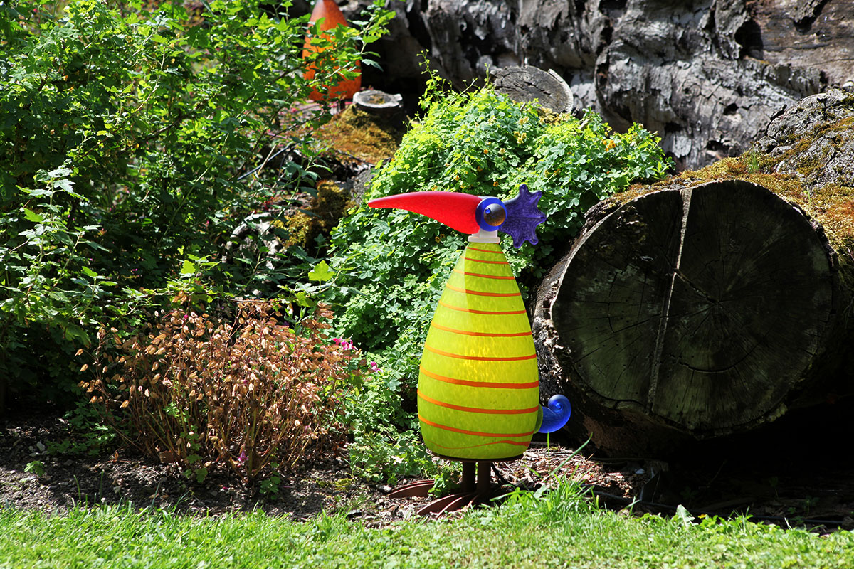 BIG GONZO ist schlanker und größer als seine Brüder FAT GONZO und GONZO. Im Licht reflektiert sein bunter Körper aus Glas seine ins Auge fallende Schönheit. Seine aufrechte Haltung strahlt Großzügigkeit und Würde aus. Zusammen mit den ulkig wirkenden Kulleraugen ein sehr charmanter Weggefährte, über den man gerne schmunzelt.