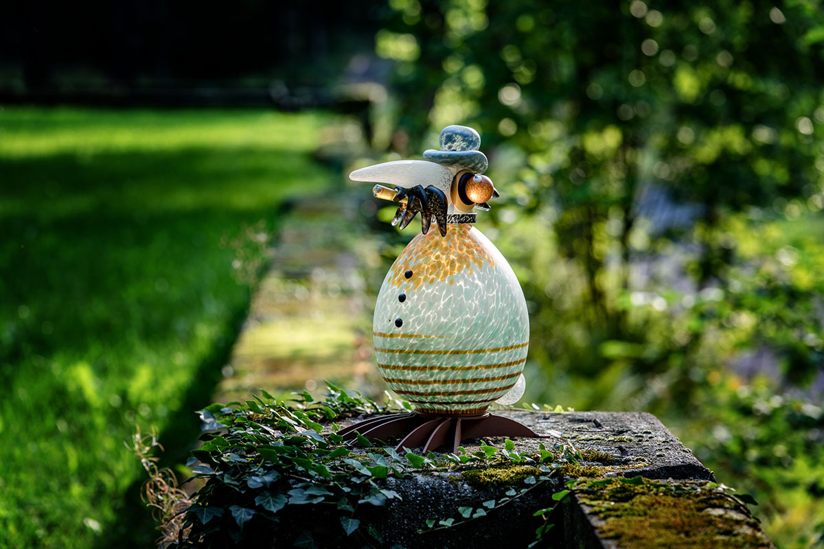 Im Sommer 2019 schlüpften Stani Jan Borowskis „SCHRÄGE VÖGEL“ zum ersten Mal erfolgreich aus dem glühenden Glas.