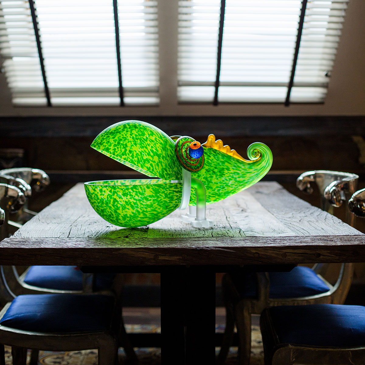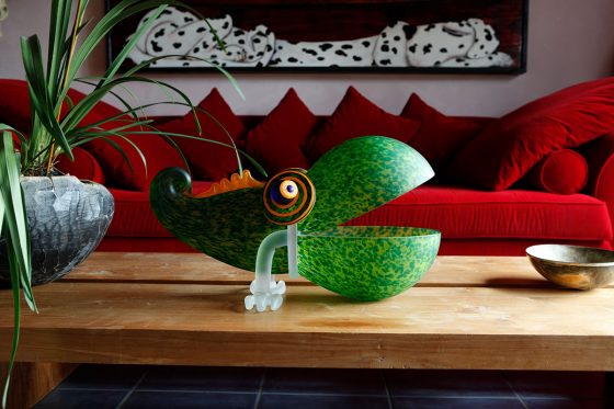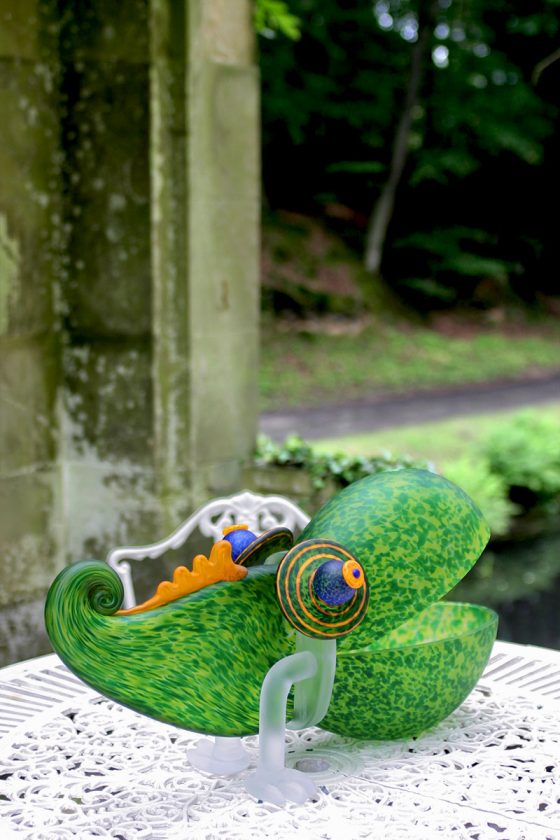 Die Fähigkeit zum Farbwechsel, zwei unabhängig von einander bewegliche Augen und eine Zunge, die so lang ist wie das ganze Tier: das skurrile Chamäleon ist an ausgefallenen Überlebensstrategien im Tierreich kaum noch zu überbieten. Vielleicht ist das auch der Grund, warum es quasi zum Star der STUDIO LINE Kollektion avanciert ist. Unverkennbar trägt es die heitere Handschrift der Borowski Manufaktur. Formvollendet und elegant schmückt das kleine Kunstwerk die Regale und Esstische seiner Besitzer und bietet sich ganz nebenbei als Obstschale oder Präsentierteller an.