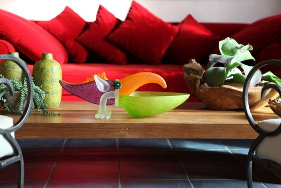 Der schillernde Spaßvogel des Regenwalds bringt Exotik und gute Laune zu Ihnen nach Hause und macht ganz nebenbei noch Licht. Die Farbnuancen seines Gefieders kommen durch die Beleuchtung noch intensiver zur Geltung.